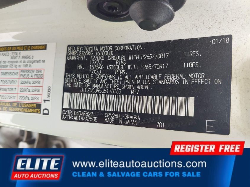 VIN #: | JTEZU5JR5J5178363 |