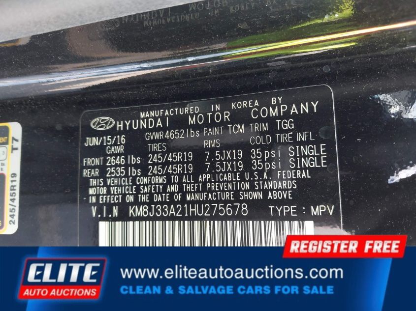 VIN #: | KM8J33A21HU275678 |