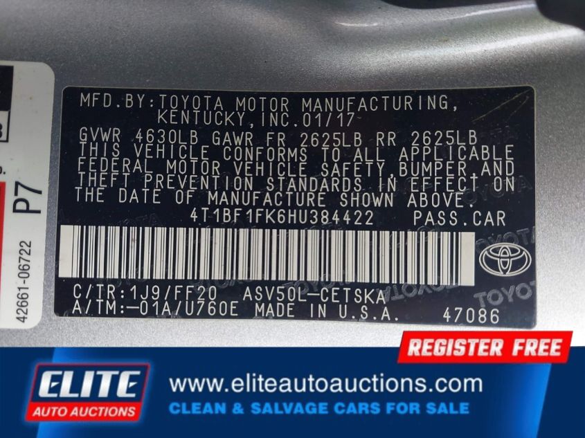 | VIN #: | 4T1BF1FK6HU384422 |
