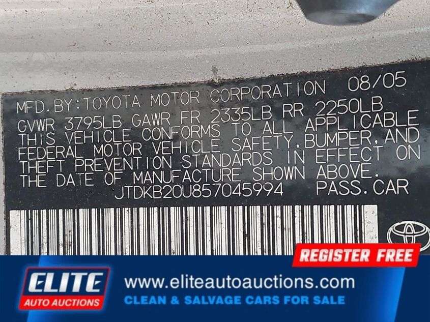 | VIN #: | JTDKB20U857045994 |