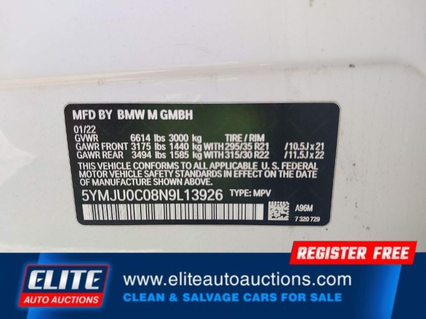 | VIN #: | 5YMJU0C08N9L13926 |