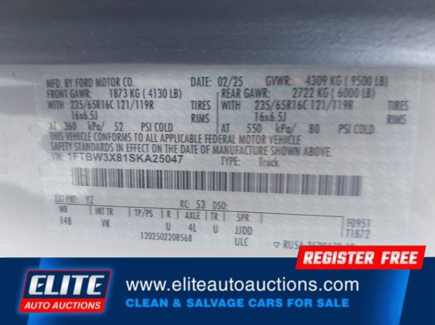 | VIN #: | 1FTBW3X81SKA25047 |