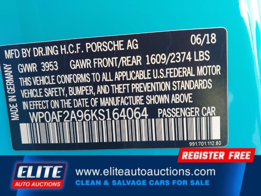 | VIN #: | WP0AF2A96KS164064 |