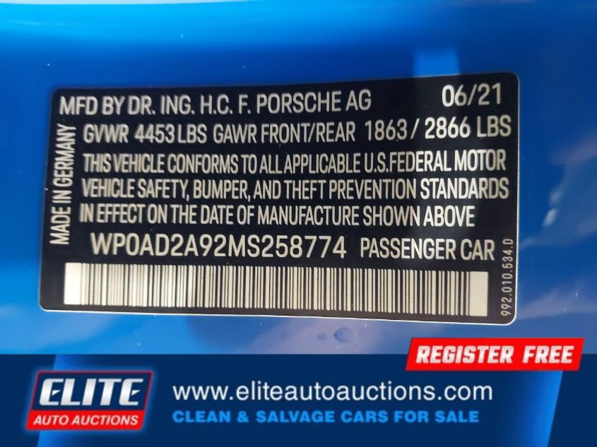 | VIN #: | WP0AD2A92MS258774 |