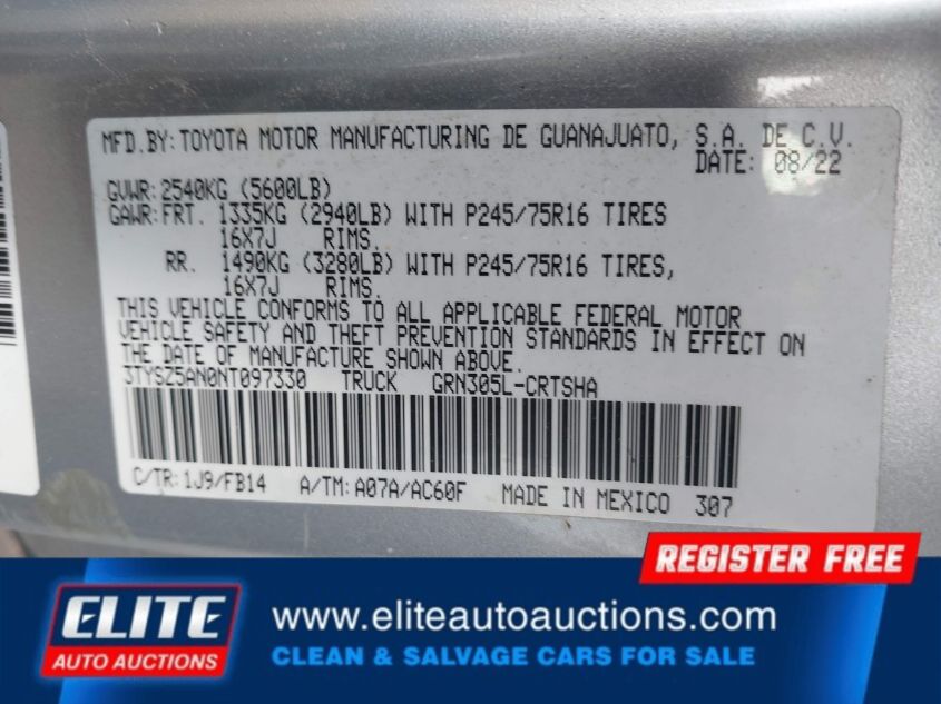 | VIN #: | 3TYSZ5AN0NT097330 |