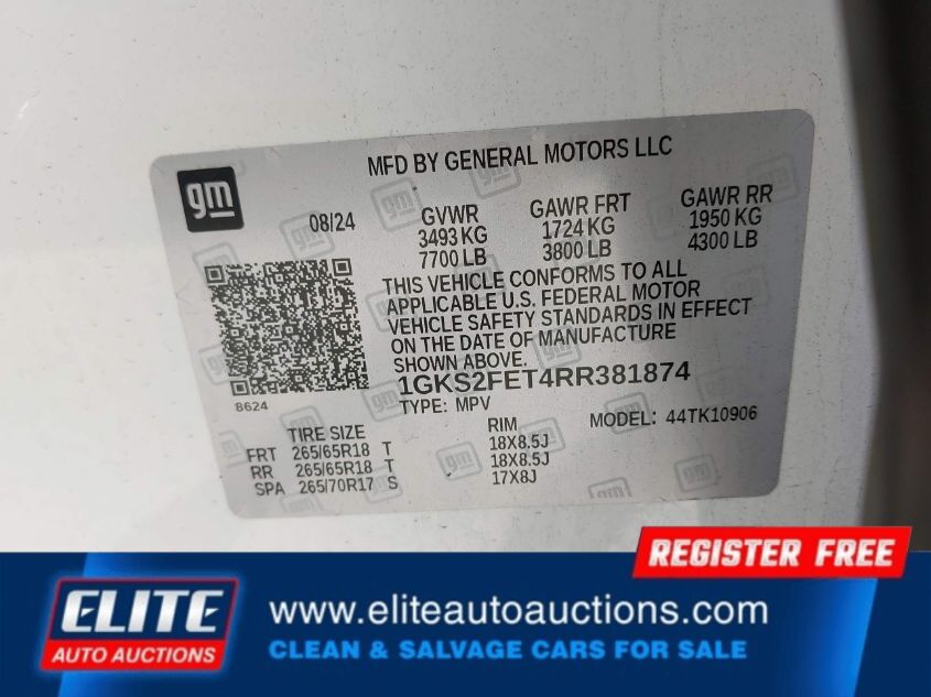 | VIN #: | 1GKS2FET4RR381874 |