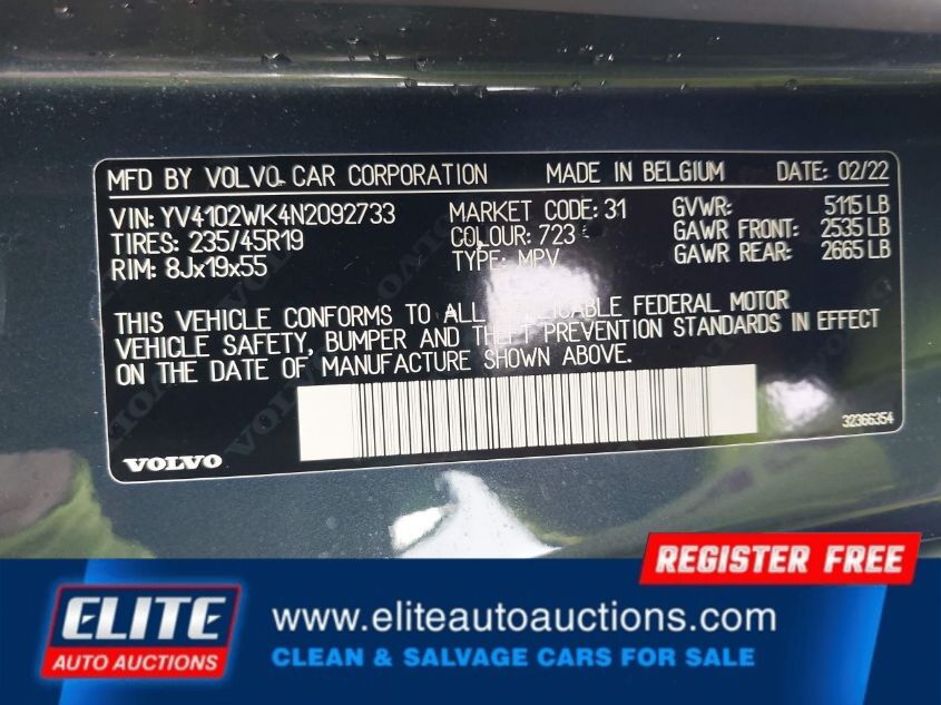 | VIN #: | YV4102WK4N2092733 |