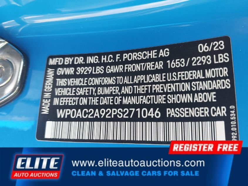 | VIN #: | WP0AC2A92PS271046 |