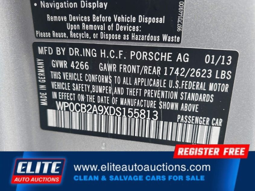 | VIN #: | WP0CB2A9XDS155813 |