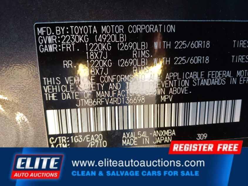 | VIN #: | JTMB6RFV4RD136698 |