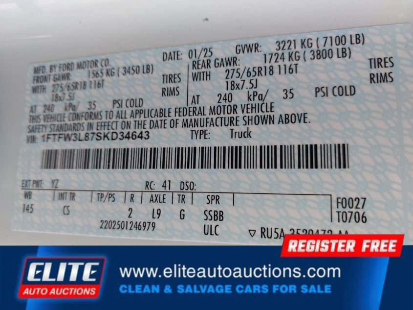 | VIN #: | 1FTFW3L87SKD34643 |