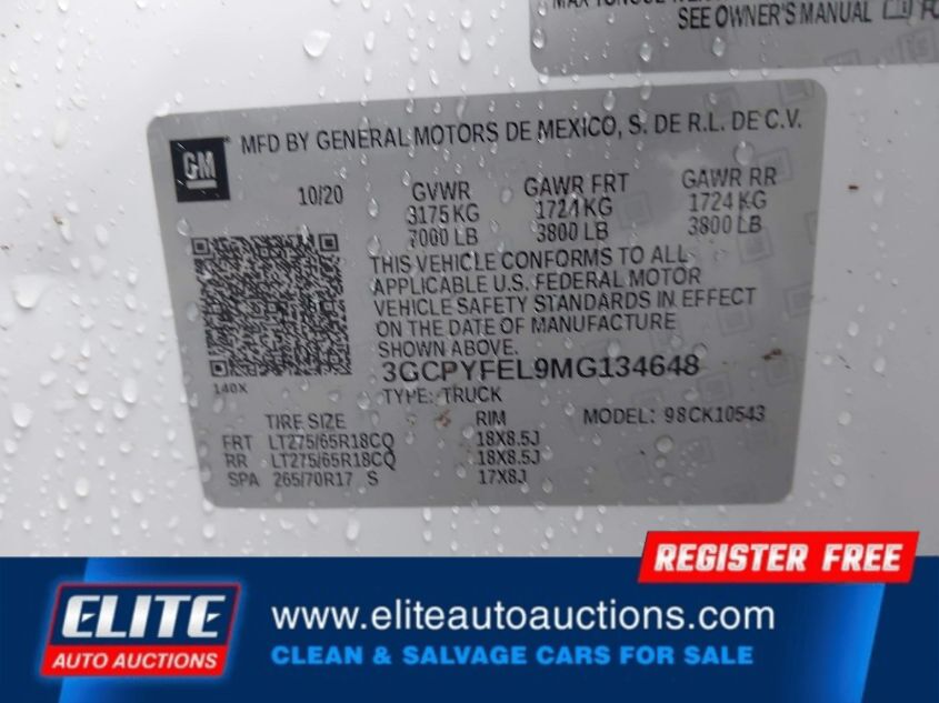 | VIN #: | 3GCPYFEL9MG134648 |