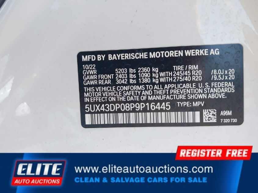 | VIN #: | 5UX43DP08P9P16445 |