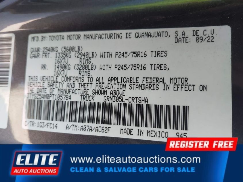 | VIN #: | 3TYSZ5AN0PT105784 |